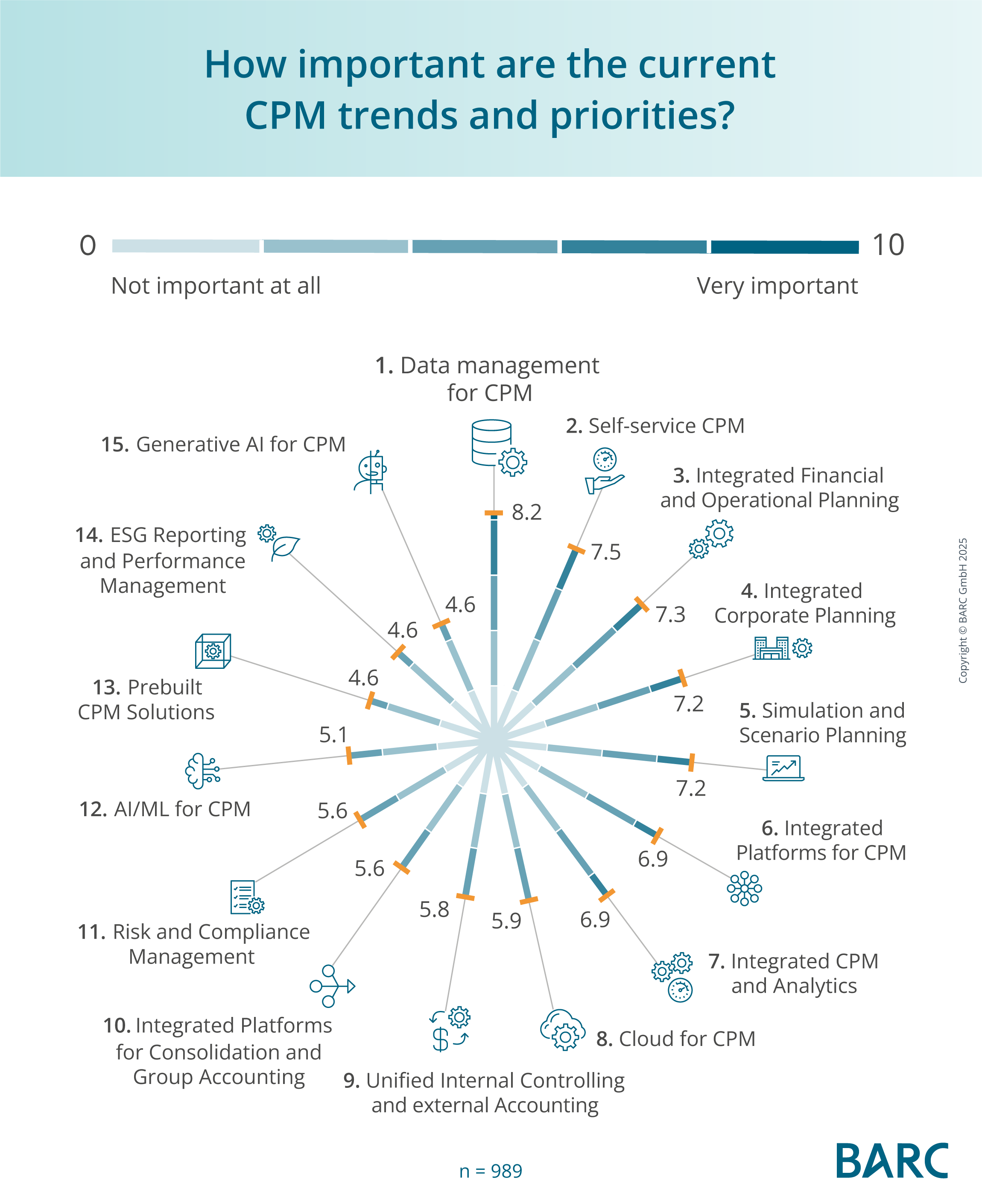 Yes, artificial intelligence (AI), and its related technology, machine learning (ML) is seemingly everywhere. This is becoming the case in CPM. Vendors in the market have embedded AI into their scenario planning solutions to simplify the process and improve results by generating more accurate probabilities from a broader range of data. More specifically, AI and ML are being used in predictive planning and forecasting and scenario comparisons. The next evolution will be the emerging role of agentic AI, with AI agents that autonomously test and adjust plans. AI enables faster delivery of data and insights, and better decision-making through deeper analytical insight into data.