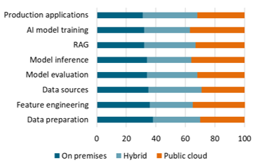 Where does your organization host the following components of its AI projects? (%) (n=318)