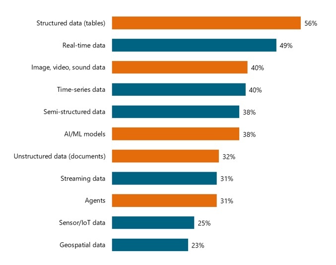 Data teams in regulated industries go well beyond traditional tables. They also use catalogs to organize metadata for new data types and AI/ML artifacts. More than a third (40%) of survey respondents catalog images, video, and sound files, and 32% catalog documents. In addition, 38% of them catalog AI/ML models and 31% catalog agents.