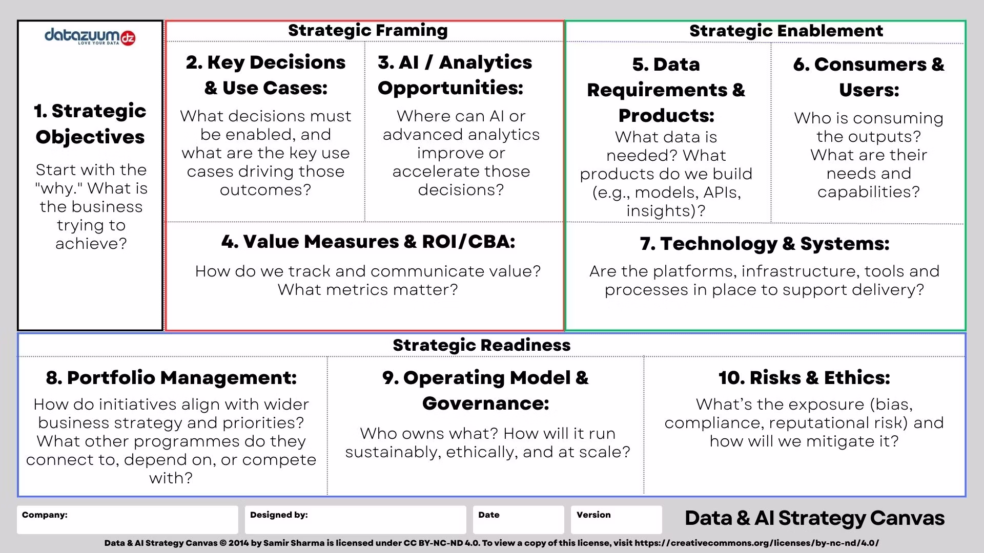 The Canvas is designed to give you both. It provides a visual, one-page truth that bridges the gap between a 50-page slide deck and a Jira ticket. It ensures that when you invest a pound into your data & AI initiatives, you know exactly where it surfaces as value.