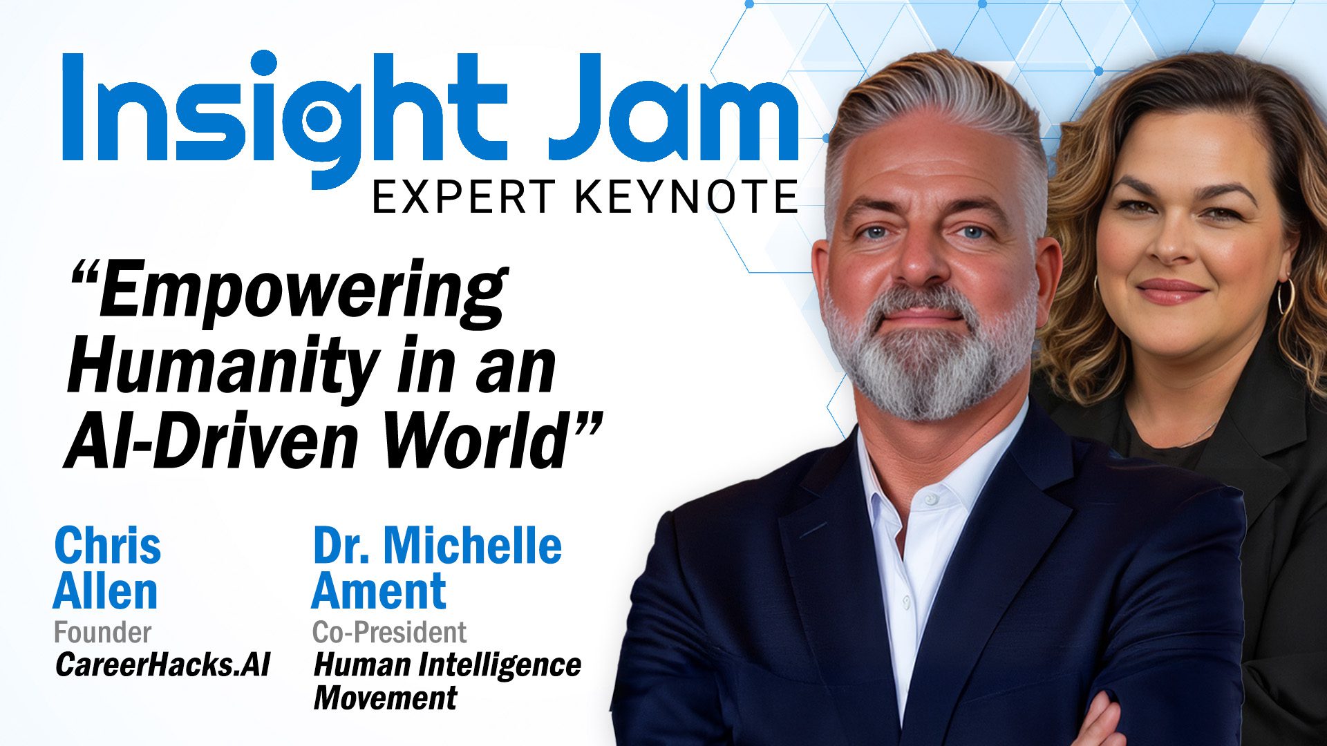 9:30 AM Opening Keynote: Empowering Humanity in an AI-Driven World featuring CareerHacks.AI Founder Chris Allen and Human Intelligence Movement Co-President Dr. Michelle Ament