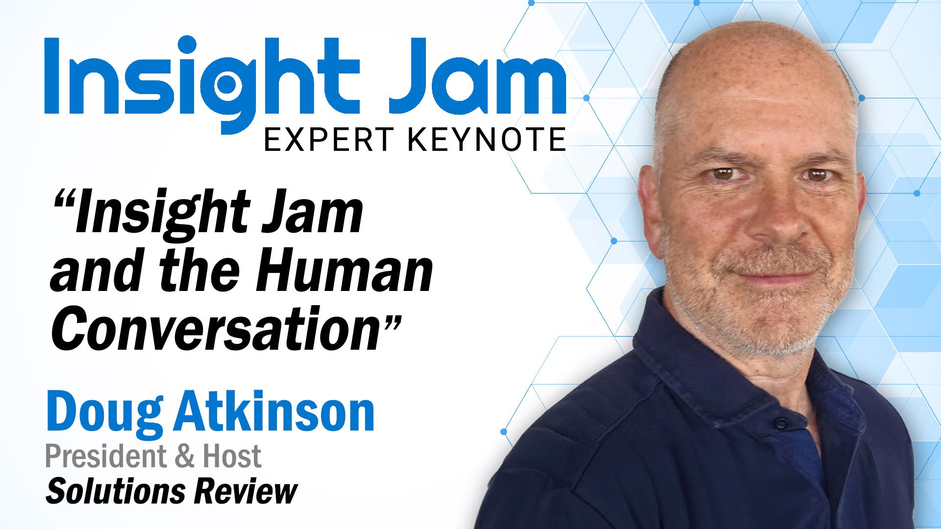 In this opening keynote, Insight Jam and the Human Conversation, Solutions Review President Doug Atkinson shares the story behind the Insight Jam movement—how a simple idea to crowdsource expert insight became a global platform shaping the dialogue on AI, human development, and the future of work.
