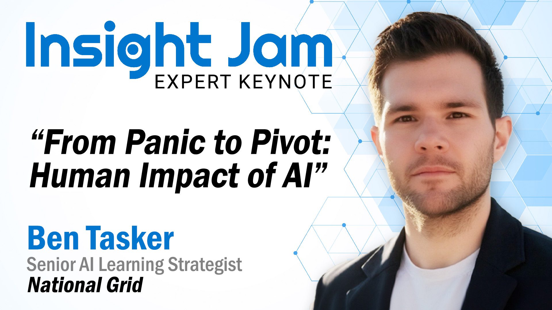 1:00 PM Keynote: From Panic to Pivot: Human Impact of AI featuring National Grid Senior AI Learning Strategist Ben Tasker